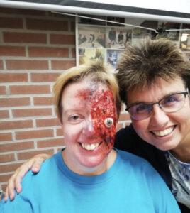 Na het behalen van je examen kun je zelf een complete ongevalssituatie ontwerpen. Je weet welke enscenering nodig is (bijvoorbeeld een fiets of stoel), welke letsels daarbij horen en hoe je je slachtofferrol zo realistisch mogelijk speelt.